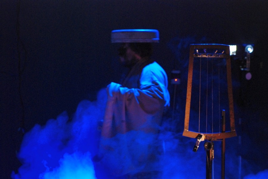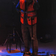 Koncert pro zvuky vlaku, železné bicí nástroje, projektované fotografie nasbírané na nádražích a kolem nich a pár postávajících performerů. Skřípavý hlas starého, mastného a nemoderního světa.